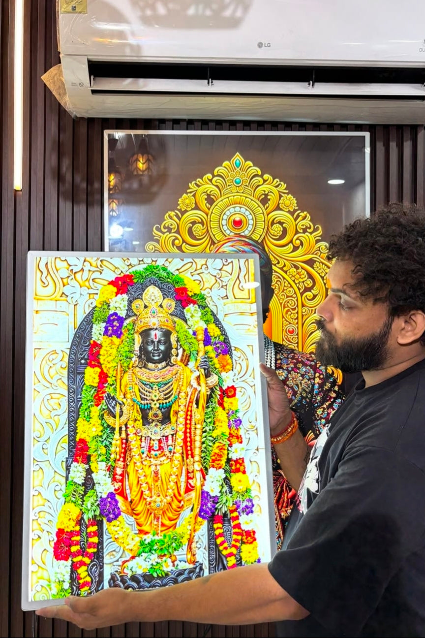 Bring home the divine light and blessings with the JAI SHREE RAM Premium Acrylic Glow Light Frame.